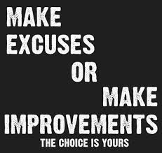 "Don’t make excuses make improvements” to better yourself, your life, your business, your church, etc you need to value the importance of this very phrase.....“don’t make excuses make improvements. Too many people have a very bad disease that I call “excusitis”. ~